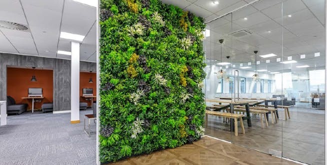 This spacious suite offers 3,670 sq ft (341 sq m) of high quality plug and play space, complete with glass partitioning defining a fully fitted kitchen and breakout area, a dedicated boardroom / conference room and bespoke meeting pods. Workstations are provided throughout the space.