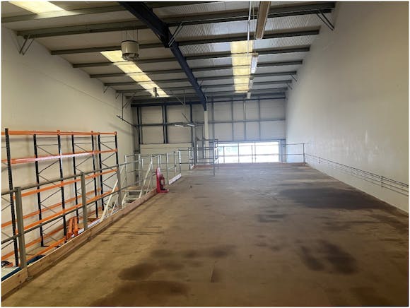 The property comprises a mid-terrace modern warehouse unit, with profile metal sheet cladding to walls and roof built on a steel portal frame. There is a single up and over electric loading door and double personnel doors.